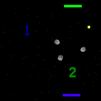 Si vous touchez l'adversaire avec un missile vous le faite rétrécir. Les météorites sont là pour corser la partie mais leur destruction libère des bonus permettant d'agrandir sa raquette.